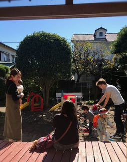 レッスンの後、お庭で子供はのびのび遊び、